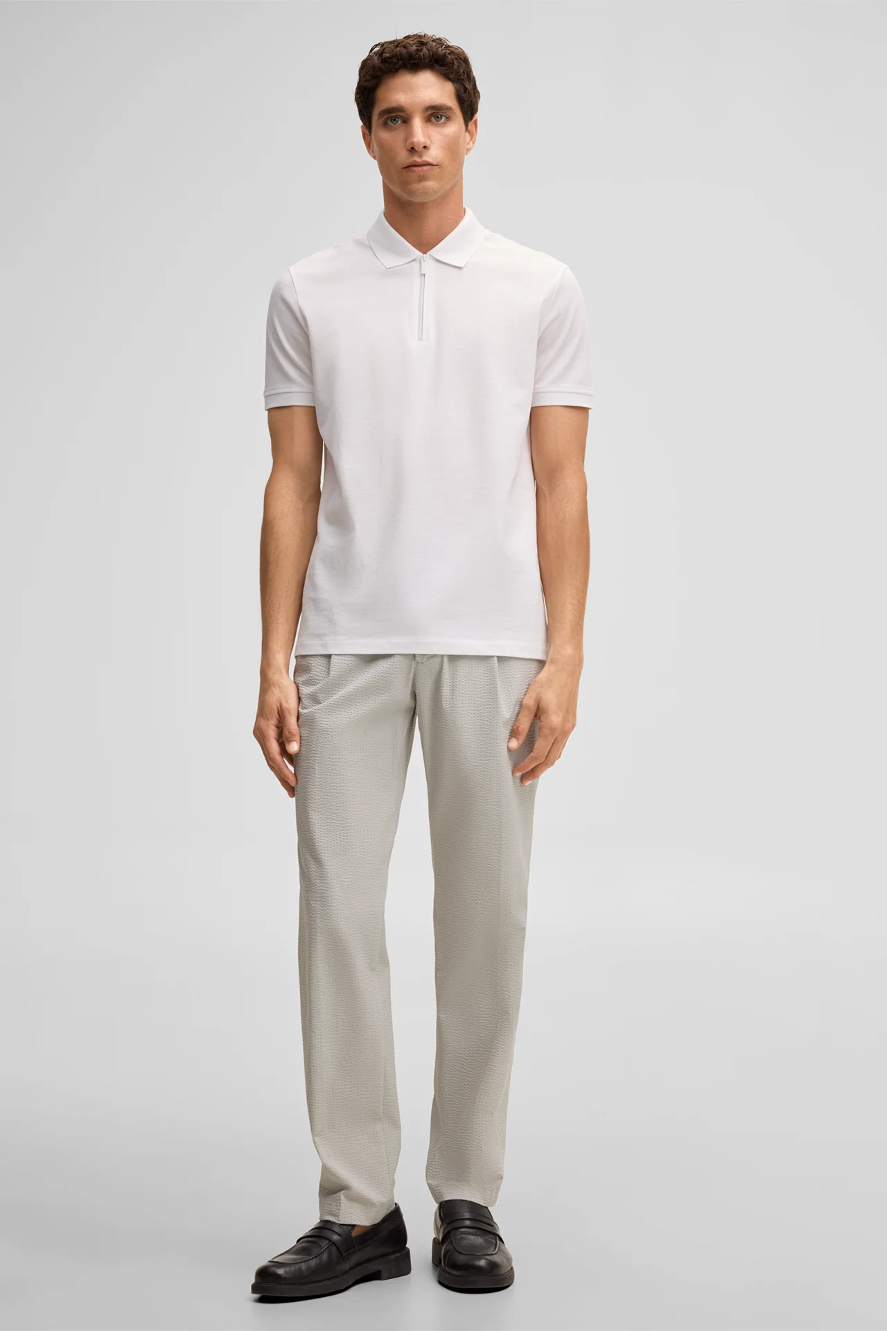 Het model draagt maat 33/32 bij een lichaamslengte van 178 cm, een tailleomvang van 84 cm en een heupomvang van 98 cm.